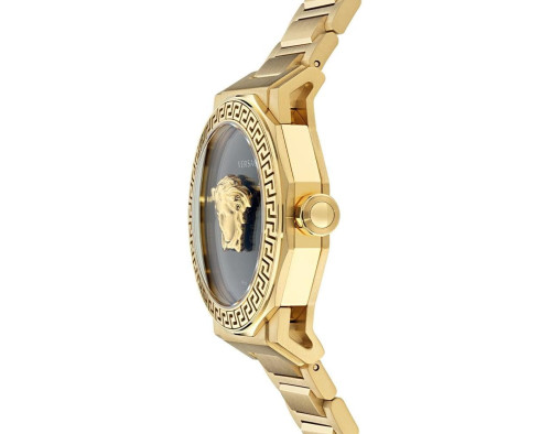 Kvarts Naine Käekell Versace VE7B00623, Roostevaba teras korpusega, läbimõõduga 38 mm, Safiiri töötlusega mineraal klaasist, Must sihverplaadi ja Kuldne Roostevaba teras rihm.