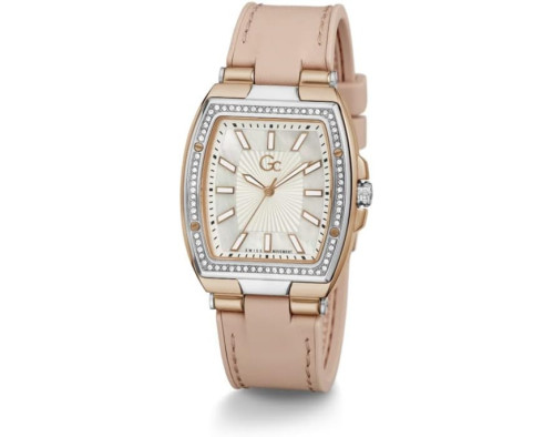 Kvarts Naine Käekell Guess Collection Y90003L1MF, Roostevaba teras korpusega, läbimõõduga 33 mm, Safiiri töötlusega mineraal klaasist, Pärlmutter sihverplaadi ja Roos Silikoon rihm.