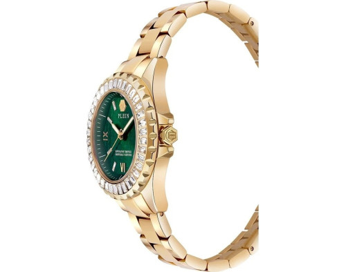 Kvarts Naine Käekell Philipp Plein PWPOA0924, Roostevaba teras korpusega, läbimõõduga 38 mm, Mineraal klaasist, Roheline sihverplaadi ja Kuldne Roostevaba teras rihm.