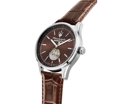 Kvarts Mees Käekell Maserati R8821124002, Roostevaba teras korpusega, läbimõõduga 42 mm, Mineraal klaasist, Valge sihverplaadi ja Pruun Nahk rihm.