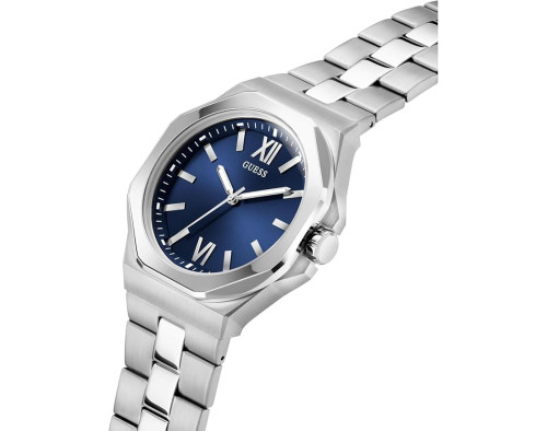 Kvarts Mees Käekell Guess GW0849G1, Roostevaba teras korpusega, läbimõõduga 42 mm, Mineraal klaasist, Sinine sihverplaadi ja Hõbedane Roostevaba teras rihm.