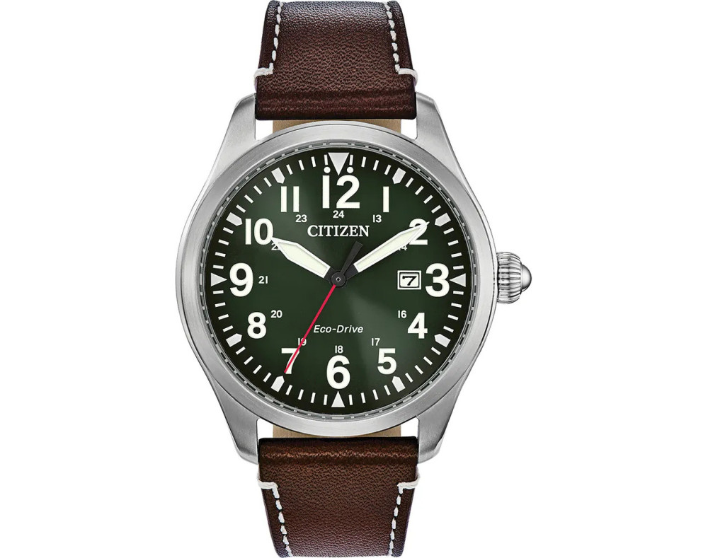 Kvarts Mees Käekell Citizen BM6838-09X, Roostevaba teras korpusega, läbimõõduga 42 mm, Mineraal klaasist, Roheline sihverplaadi ja Pruun Nahk rihm.