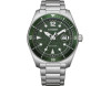 Kvarts Mees Käekell Citizen AW1880-55X, Roostevaba teras korpusega, läbimõõduga 43 mm, Mineraal klaasist, Roheline sihverplaadi ja Hõbedane Roostevaba teras rihm.