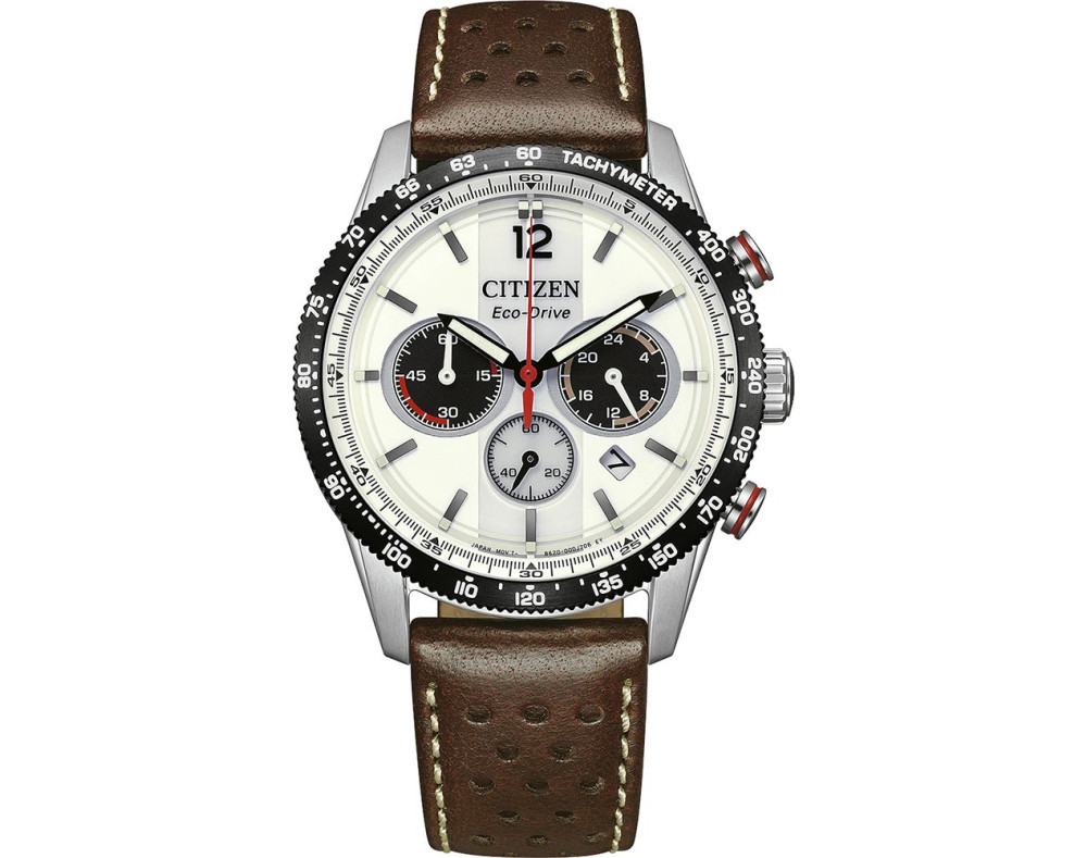 Kvarts Mees Käekell Citizen CA4714-04A, Roostevaba teras korpusega, läbimõõduga 40 mm, Mineraal klaasist, Valge sihverplaadi ja Pruun Nahk rihm.