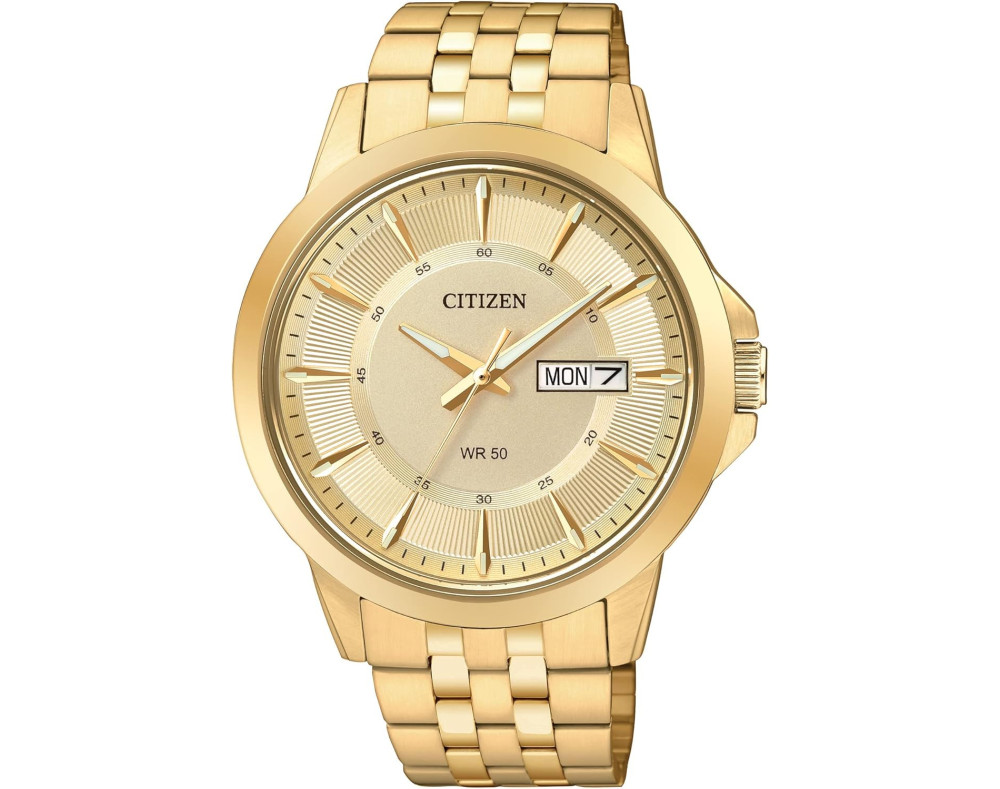 Kvarts Mees Käekell Citizen BF2013-56PE, Roostevaba teras korpusega, läbimõõduga 41 mm, Mineraal klaasist, Kuldne sihverplaadi ja Kuldne Roostevaba teras rihm.