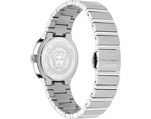 Montre bracelet Versace Greca Logo Pearl VE0S00225 pour Femme à Quartz, avec une boîtier de Acier inoxydable d’un diamètre de 33 mm, avec un cadran Turquoise et avec un bracelet de Acier inoxydable en couleur Argent.