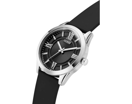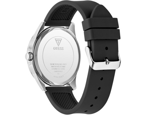 Montre bracelet Guess Elliot GW0894G1 pour Homme à Quartz, avec une boîtier de Acier inoxydable d’un diamètre de 44 mm, avec un cadran Noir et avec un bracelet de Silicone en couleur Noir.