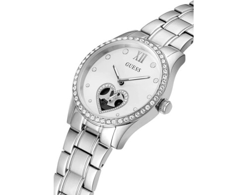 Montre bracelet Guess Be Loved GW0380L1 pour Femme à Quartz, avec une boîtier de Acier inoxydable d’un diamètre de 38 mm, avec un cadran Argent et avec un bracelet de Acier inoxydable en couleur Argent.