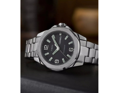 Montre bracelet Timex Essex TW2W92700 pour Homme à Quartz, avec une boîtier de Acier inoxydable d’un diamètre de 46 mm, avec un cadran Noir et avec un bracelet de Acier inoxydable en couleur Argent.