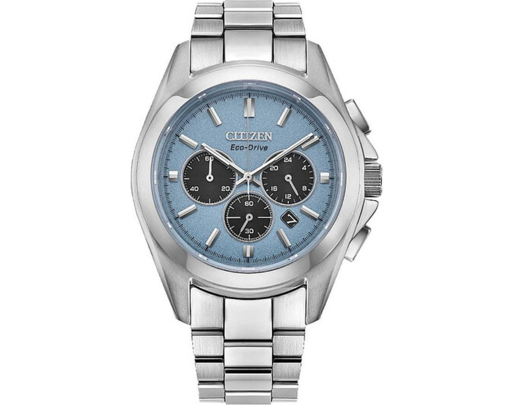 Montre bracelet Citizen Eco-Drive CA4680-55L pour Homme à Quartz, avec une boîtier de Acier inoxydable d’un diamètre de 41 mm, avec un cadran Bleu clair et avec un bracelet de Acier inoxydable en couleur Argent.