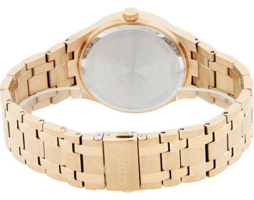 Montre bracelet Citizen Eco-Drive BM7653-50Q pour Homme à Quartz, avec une boîtier de Acier inoxydable d’un diamètre de 40 mm, avec un cadran Or rose et avec un bracelet de Acier inoxydable en couleur Or rose.