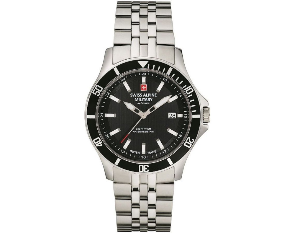 Montre bracelet Swiss Alpine Military Challenger 7022.1137 pour Homme à Quartz, avec une boîtier de Acier inoxydable d’un diamètre de 42 mm, avec un cadran Noir et avec un bracelet de Acier inoxydable en couleur Argent.