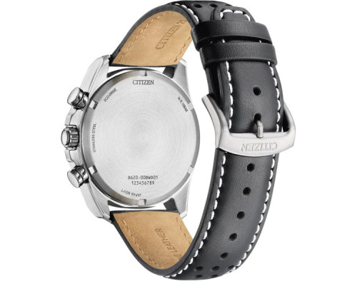 Montre bracelet Citizen Eco-Drive CA4640-09A pour Homme à Quartz, avec une boîtier de Acier inoxydable d’un diamètre de 41 mm, avec un cadran Blanc et avec un bracelet de Cuir en couleur Noir.