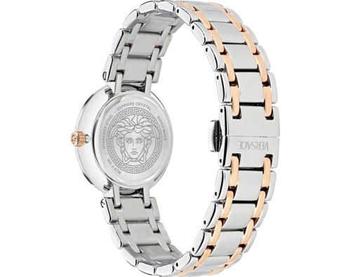 Quartz Womens Wristwatch Versace Antlia VE0P00525 with Stainless steel case, with diameter 34 mm, White dial and Two-tone Stainless steel band.