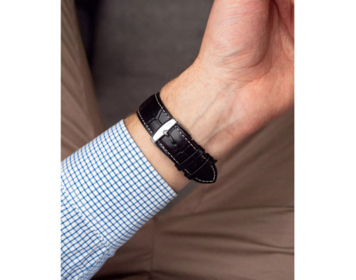 Quartz Man Wristwatch Zeppelin 100 Years 7690-1 with Stainless steel case, with diameter 42 mm, Silver dial and Black Leather band.