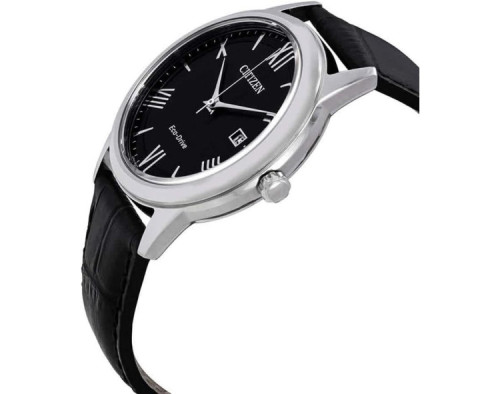Quartz Man Wristwatch Citizen Eco Drive AW1231-07E with Stainless steel case, with diameter 40 mm, Black dial and Black Leather band.