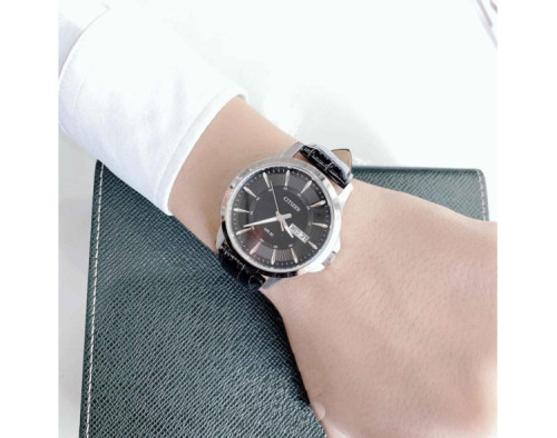 Quartz Man Wristwatch Citizen BF2011-01EE with Stainless steel case, with diameter 41 mm, Black dial and Black Leather band.