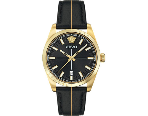 Orologio da polso Versace Greca Logo Pearl VE0S00525 Analogico Donna con movimento Al quarzo, cassa in Acciaio inossidabile di diametro 33 mm, quadrante Verde, vetro Minerale con trattamento Zaffiro e cinturino in Acciaio inossidabile di colore Oro.