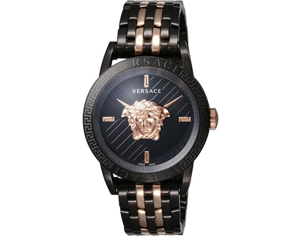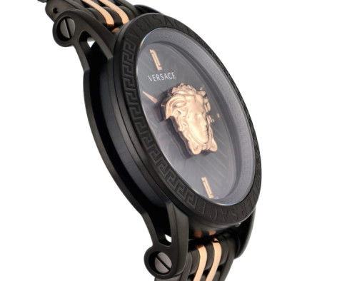 Orologio da polso Versace Code VESN00622 Analogico Uomo con movimento Al quarzo, cassa in Acciaio inossidabile di diametro 43 mm, quadrante Nero, vetro Minerale con trattamento Zaffiro e cinturino in Acciaio inossidabile di colore Bicolore.