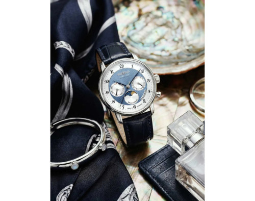 Orologio da polso Zeppelin Friedrichshafen 8537-3 Analogico Donna con movimento Al quarzo, cassa in Acciaio inossidabile di diametro 36 mm, quadrante Azzurro, vetro Minerale K1 e cinturino in Pelle di colore Blu.