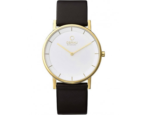 Kvarcas Vyras Rankinis laikrodis Obaku V143GXGWRB su Nerūdijantis plienas dėklu, 39 mm skersmens, Mineralinis stiklas, Baltas ciferblatu ir Juoda Oda apyranke.
