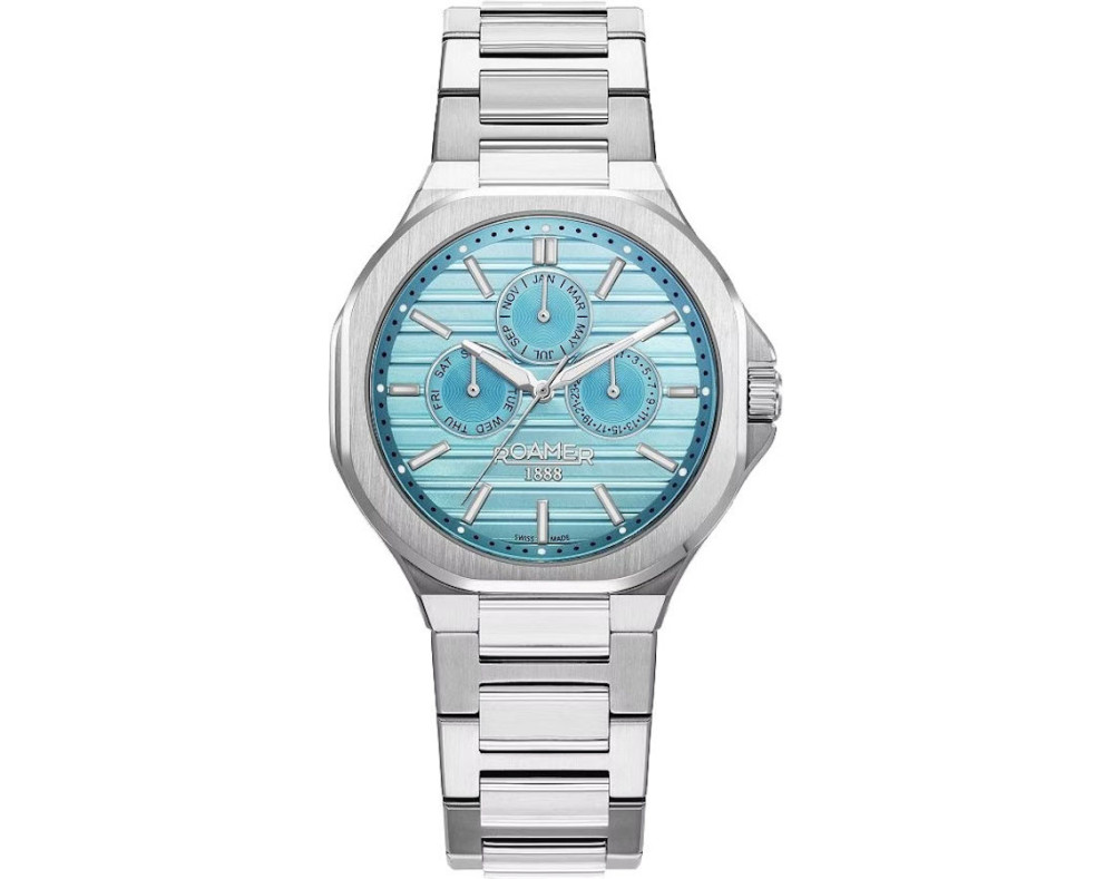 Kvarcas Vyras Rankinis laikrodis Roamer 995989-41-05-20 su Nerūdijantis plienas dėklu, 40 mm skersmens, Mineralas su safyru stiklas, Dangaus mėlynumo ciferblatu ir Sidabras Nerūdijantis plienas apyranke.