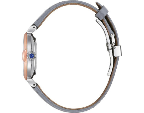 Kvarcas Moteris Rankinis laikrodis Citizen EM1074-15D su Nerūdijantis plienas dėklu, 30 mm skersmens, Mineralas su safyru stiklas, Perlamutra ciferblatu ir Pilka Oda apyranke.