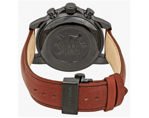 Kvarcas Vyras Rankinis laikrodis Certina C034.654.36.057.00 su Nerūdijantis plienas dėklu, 42 mm skersmens, Mineralas su safyru stiklas, Juoda ciferblatu ir Ruda Oda apyranke.