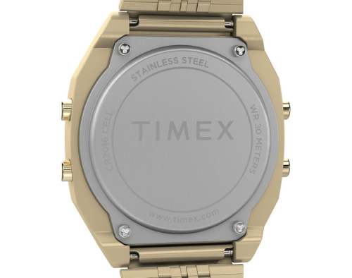 Kvarcas Vyras Rankinis laikrodis Timex TW2V74300 su Nerūdijantis plienas dėklu, 36 mm skersmens, Akrilas stiklas, LCD ciferblatu ir Auksas Nerūdijantis plienas apyranke.