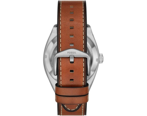 Mehānisks Cilvēks Rokas pulkstenis Fossil ME3261 ar Nerūsējošais tērauds korpusu, ar diametru 42 mm, Minerāls stikls, Zaļš ciparnīcu un Brūns Āda siksnu.