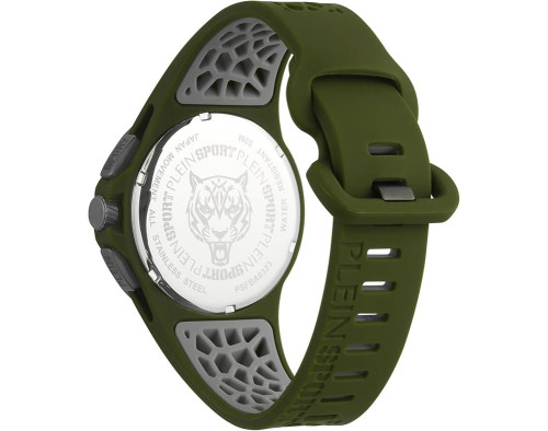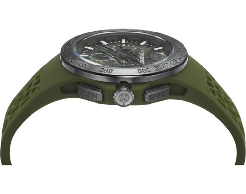 Kvarcs Cilvēks Rokas pulkstenis Plein Sport PSABA0323 ar Nerūsējošais tērauds korpusu, ar diametru 43 mm, Minerāls stikls, Zaļš ciparnīcu un Zaļš Silikona siksnu.