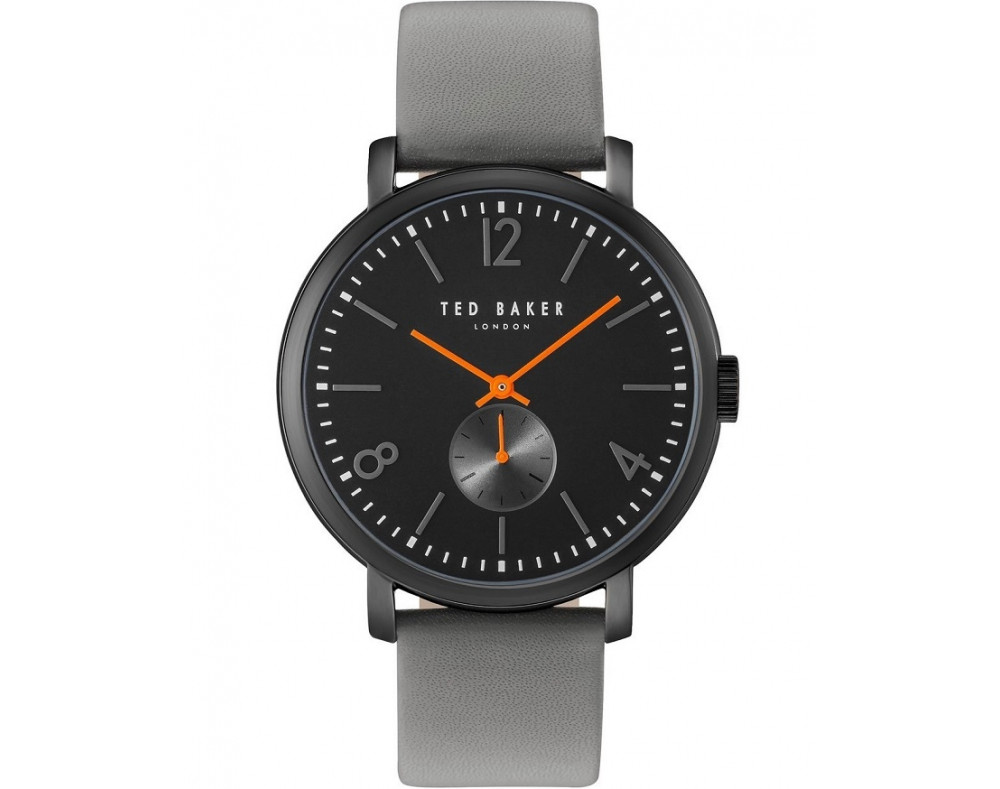 Kvarcs Cilvēks Rokas pulkstenis Ted Baker 10031517 ar Nerūsējošais tērauds korpusu, ar diametru 43 mm, Minerāls stikls, Melns ciparnīcu un Pelēks Āda siksnu.