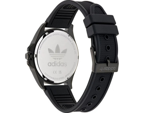 Kvarcs Unisex Rokas pulkstenis Adidas AOFH25001 ar Nerūsējošais tērauds korpusu, ar diametru 40 mm, Minerāls stikls, Melns ciparnīcu un Melns Silikona siksnu.