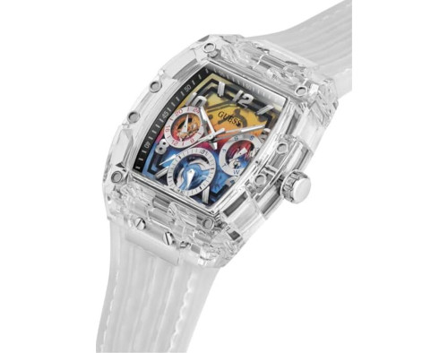 Kvarcs Cilvēks Rokas pulkstenis Guess GW0499G3 ar Sveķi korpusu, ar diametru 43 mm, Minerāls stikls, Daudzkrāsains ciparnīcu un Caurspīdīgs Sveķi siksnu.