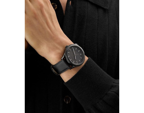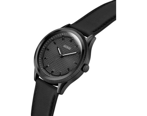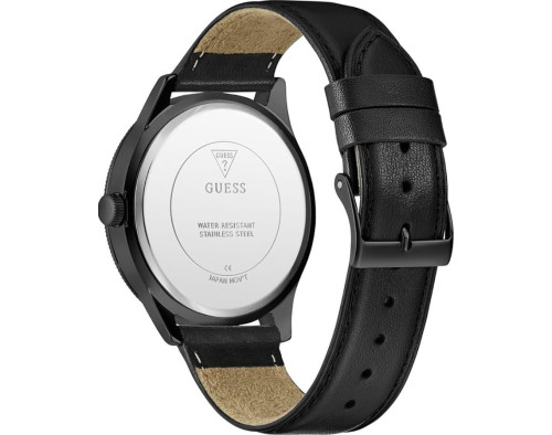 Kvarcs Cilvēks Rokas pulkstenis Guess GW0846G3 ar Nerūsējošais tērauds korpusu, ar diametru 44 mm, Minerāls stikls, Melns ciparnīcu un Melns Āda siksnu.