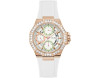 Kvarcs Sieviete Rokas pulkstenis Guess GW0695L3 ar Nerūsējošais tērauds korpusu, ar diametru 40 mm, Minerāls stikls, Sudrabs ciparnīcu un Balts Silikona siksnu.