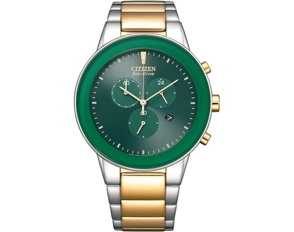 Kvarcs Cilvēks Rokas pulkstenis Citizen AT2244-84X ar Nerūsējošais tērauds korpusu, ar diametru 43 mm, Minerāls stikls, Zaļš ciparnīcu un Divu toņu Nerūsējošais tērauds siksnu.