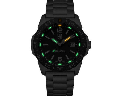 Kvarcs Cilvēks Rokas pulkstenis Luminox XS.3122 ar Nerūsējošais tērauds korpusu, ar diametru 44 mm, Minerāls ar safīru apstrādi stikls, Melns ciparnīcu un Sudrabs Nerūsējošais tērauds siksnu.