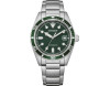 Mehānisks Cilvēks Rokas pulkstenis Citizen NJ0220-52X ar Nerūsējošais tērauds korpusu, ar diametru 39 mm, Minerāls stikls, Zaļš ciparnīcu un Sudrabs Nerūsējošais tērauds siksnu.