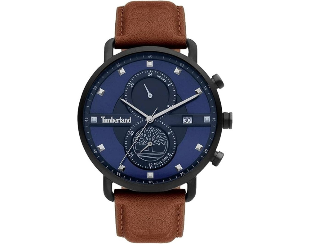 Кварц Мужчина Наручные часы Timberland TDWGF2101003, корпус Нержавеющая сталь, диаметр 45 mm, Минеральная стекло, Синий циферблат и Коричневый Кожа ремешок.