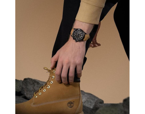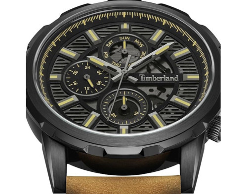 Кварц Мужчина Наручные часы Timberland TDWGF0056101, корпус Нержавеющая сталь, диаметр 46 mm, Минеральная стекло, Черный циферблат и Коричневый Кожа ремешок.