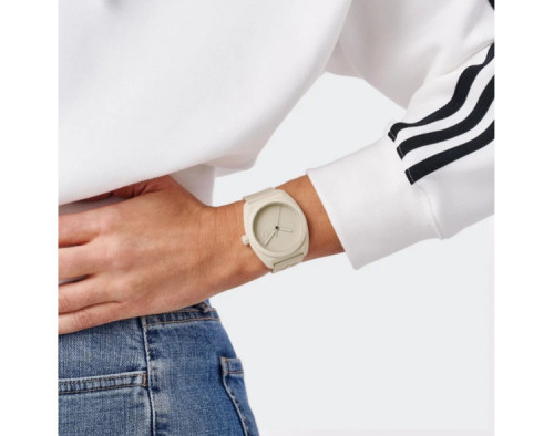 Кварц унисекс Наручные часы Adidas AOST24055, корпус Керамический, диаметр 42 mm, Минеральная стекло, Бежевый циферблат и Бежевый Силикон ремешок.