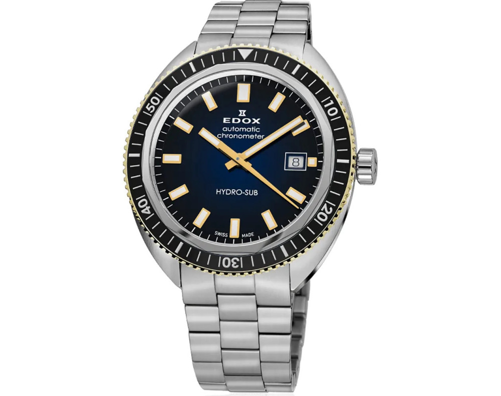 механический Мужчина Наручные часы EDOX 80128 357JNM BUDD, корпус Нержавеющая сталь, диаметр 42 mm, Минерал с обработкой сапфиром стекло, Синий циферблат и Серебро Нержавеющая сталь ремешок.