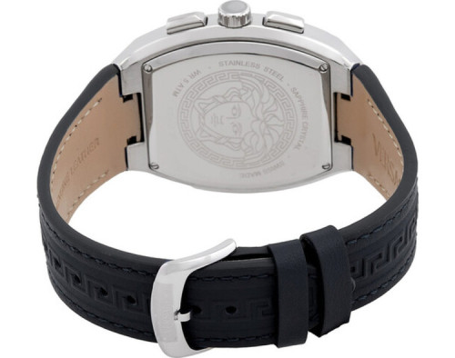Кварц Мужчина Наручные часы Versace VESP00124, корпус Нержавеющая сталь, диаметр 44 mm, Минерал с обработкой сапфиром стекло, Черный циферблат и Черный Кожа ремешок.