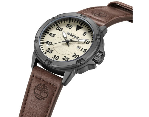 Кварц Мужчина Наручные часы Timberland TDWGB9002802, корпус Нержавеющая сталь, диаметр 46 mm, Минеральная стекло, Бежевый циферблат и Коричневый Кожа ремешок.