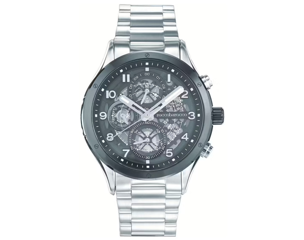 Кварц Мужчина Наручные часы Roccobarocco RB.5327M-02M, корпус Нержавеющая сталь, диаметр 44 mm, Минеральная стекло, Серый циферблат и Серебро Нержавеющая сталь ремешок.