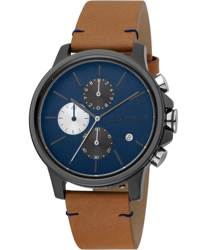 Kvarts Mees Käekell Esprit ES1G155L0045, Roostevaba teras korpusega, läbimõõduga 42 mm, Mineraal klaasist, Sinine sihverplaadi ja Pruun Nahk rihm.