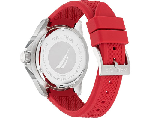 Kvarts Mees Käekell Nautica NAPKMF202, Roostevaba teras korpusega, läbimõõduga 46 mm, Mineraal klaasist, Hall sihverplaadi ja Punane Silikoon rihm.
