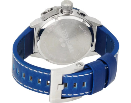 Armbanduhr TW Steel Red Bull Ampol Racing TWCS122 für Herren mit Quarzwerk, Uhrengehäuse aus Edelstahl mit einem Durchmesser von 45 mm, Ziffernblatt Blau und Uhrenarmband aus Leder in der Farbe Blau.