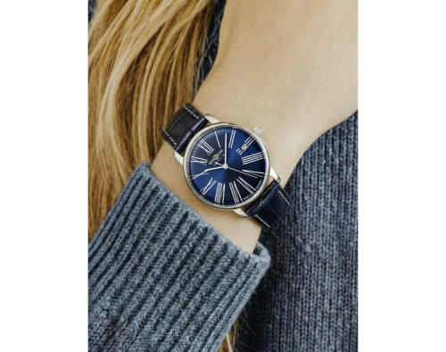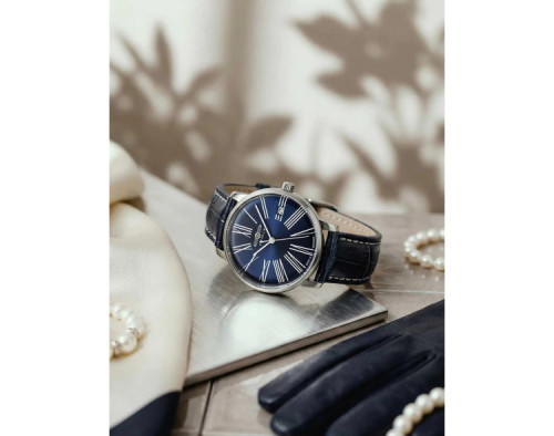 Armbanduhr Zeppelin Flatline 8345-3 für Damen mit Quarzwerk, Uhrengehäuse aus Edelstahl mit einem Durchmesser von 35 mm, Ziffernblatt Blau und Uhrenarmband aus Leder in der Farbe Blau.